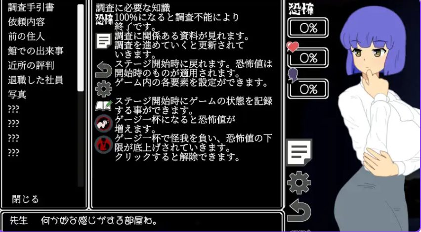 进入宅邸→心率调查→小游戏解谜→视角切换→最终选择→结局CG