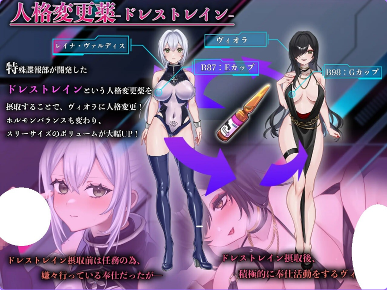 顶级特工蕾娜因任务失败被迫服下实验药物“着装特莱因”,分裂出妖艳人格“薇欧拉”。