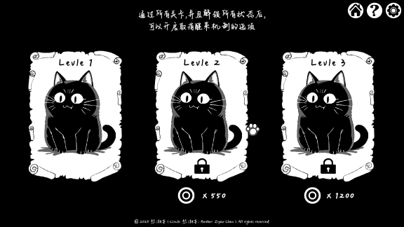 3 个关卡:客厅 → 卧室 → 秘密空间,难度逐级提升。