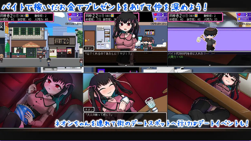 白天:打工赚钱、提升“社交力”,解锁外出约会事件。